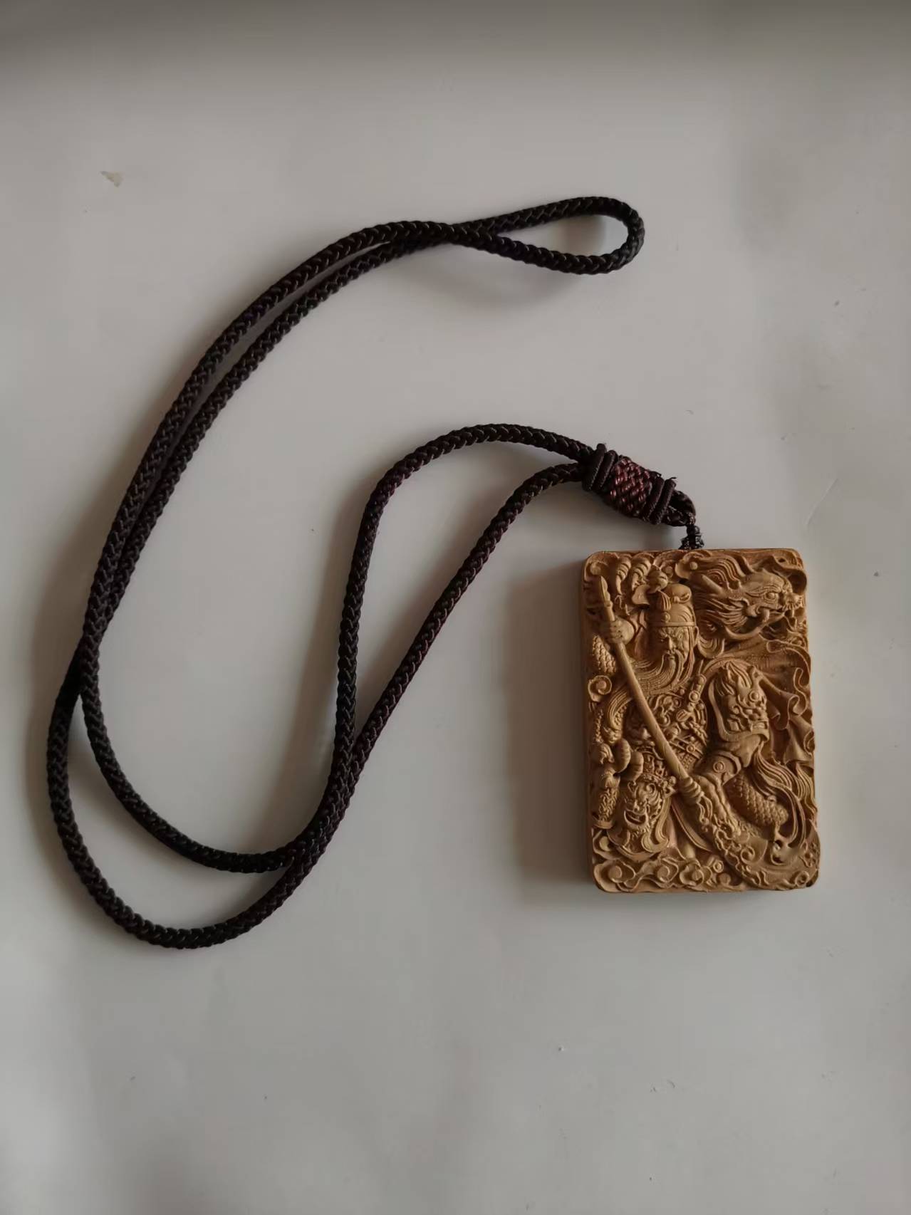 花梨木武财神关公雕牌开光。不开光就是块木牌,开光就是注灵,有了特定神性。香烛供品,掐诀念咒,请师做法,打卦必不可少。哪路神仙的挂牌,请时法师必有感应,若无恐效果不大灵啊。